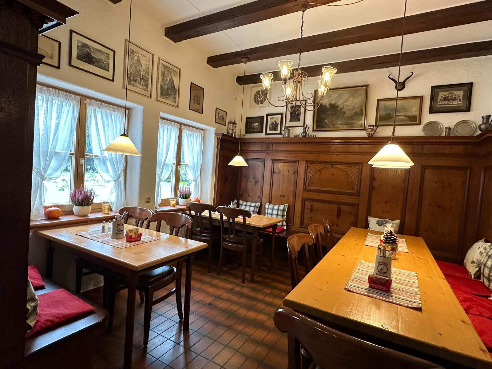 Im Sommer lädt der Biergarten zum Verweilen ein, in der kühleren Jahreszeit sorgt unser Holzofen für eine besonders gemütliche Stimmung im Haus.